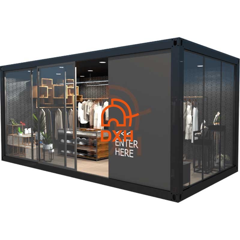 A 20-foot container pop-up clothing store can hold approximately 200-300 garments, depending on the display method. A 40-foot container can hold 400-600 garments. DXH House can design customized storage solutions for specific product types to maximize storage capacity.