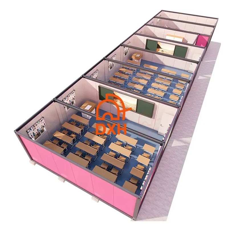 DXH House's flat pack container school buildings provide ready-to-use learning and office spaces for students and educators. Our prefabricated container structures eliminate the lengthy construction cycles and site disruptions associated with traditional buildings. DXH House offers two standard container house sizes: 20-foot or 40-foot, and we also offer customizable container layouts. Our service commitment is to provide you with a fast-deployed, durable, and high-quality modular container school building.